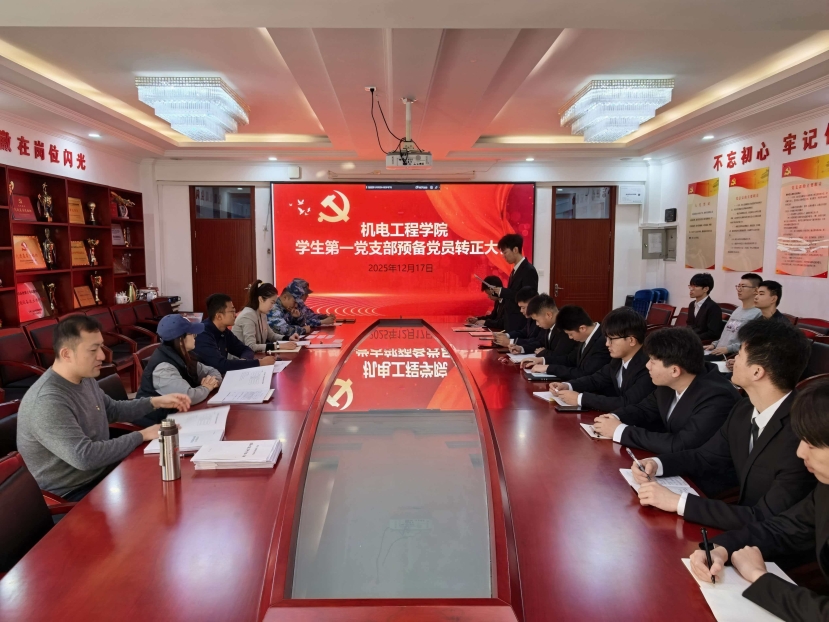 为严格党员发展程序,筑牢党员队伍建设根基,强化青年党员的责任担当与使命意识,2025年12月17日上午,机电工程学院学生党支部在博学楼212会议室召开学生预备党员转正大会。