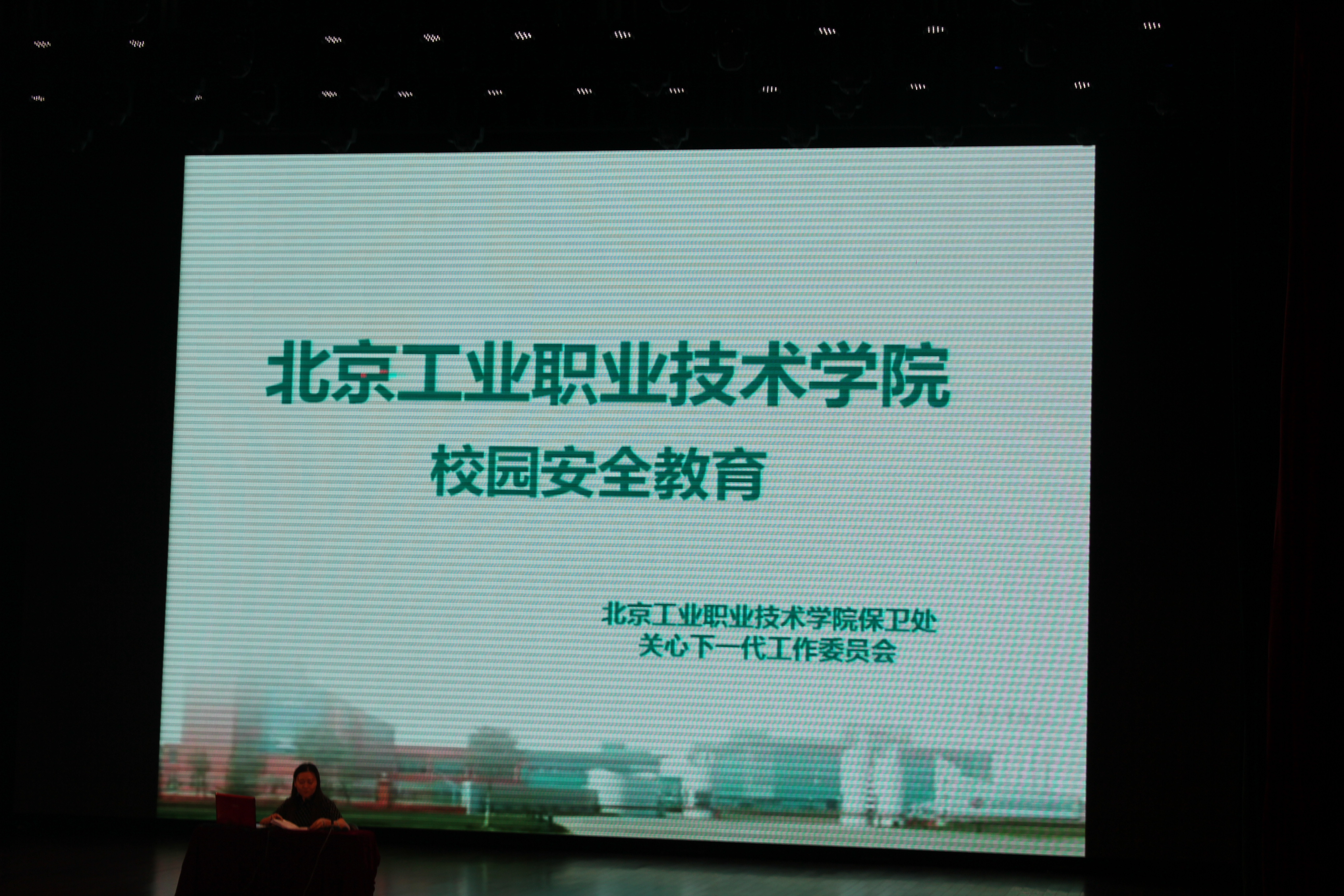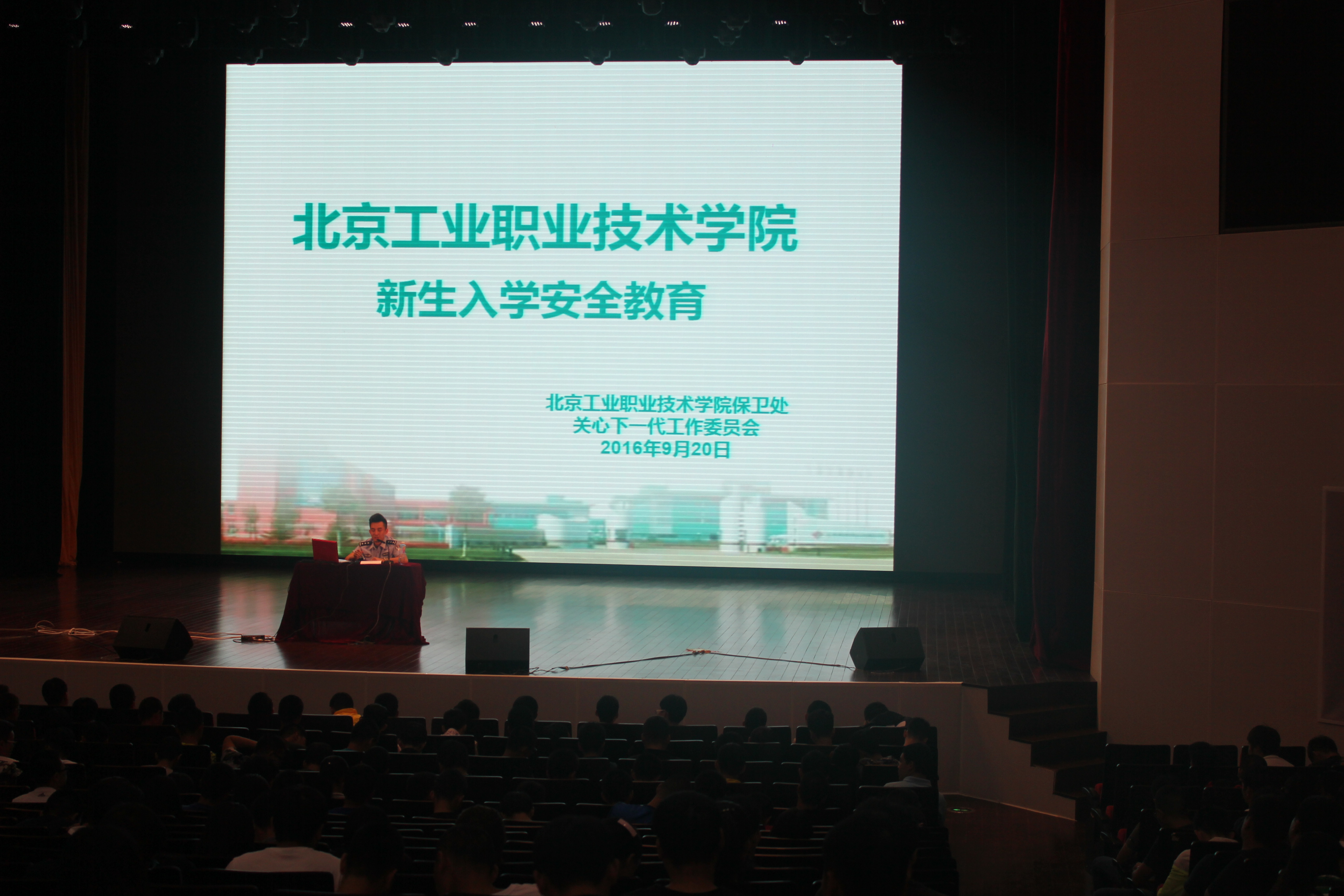 随后,我校保卫处巩家钰老师为新生们做了题为“校园安全教育”方面的知识讲座,主要关于如何认识宿舍安全、网络安全、人身安全、财产安全等方面的内容,并列举了一些安全事例以此来说明校园安全要时刻警醒,牢固树立“安全第一,预防为主”的安全思想。 最后,石景山区五里坨派出所胡唯警官给新生们讲解了“法制安全教育”知识,胡警官谈到了什么是违法犯罪行为、怎么远离违法犯罪行为、及违法犯罪行为的危害性等。