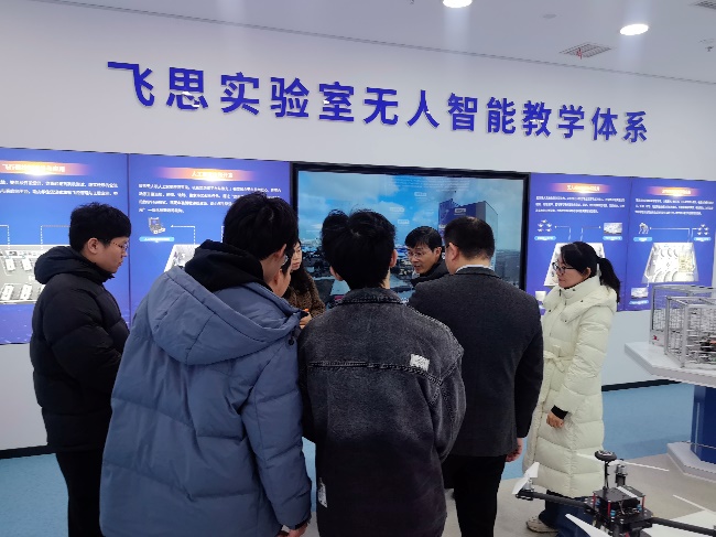 调研组由机电一体化专业带头人李淼、机电教研室副主任黄欢、无人机装调课程负责人杨德亮、智能飞行器大赛负责人谭颖琦及四名参赛学生组成。卓翼智能教育行业售前总监苏旭、刘凌宇博士全程陪同。